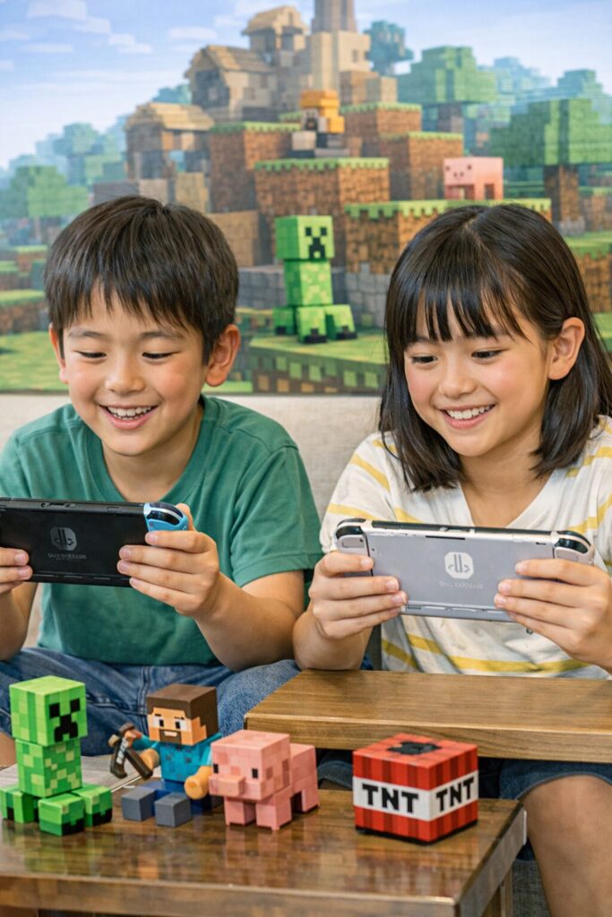 特に小学生に支持されている理由は、「自由に遊べる+長く飽きない」という点にあります。家を作る、街を作る、友達と協力するなど遊び方が無限に広がるため、短期間で飽きることが少ないのが特徴です。